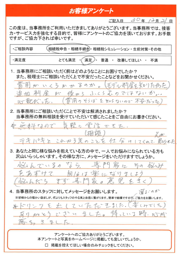 当事務所の無料相談を受けていただいて感じたことをご自由にお書きください