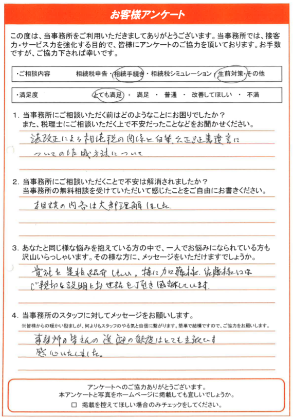 当事務所の無料相談を受けていただいて感じたことをご自由にお書きください。
