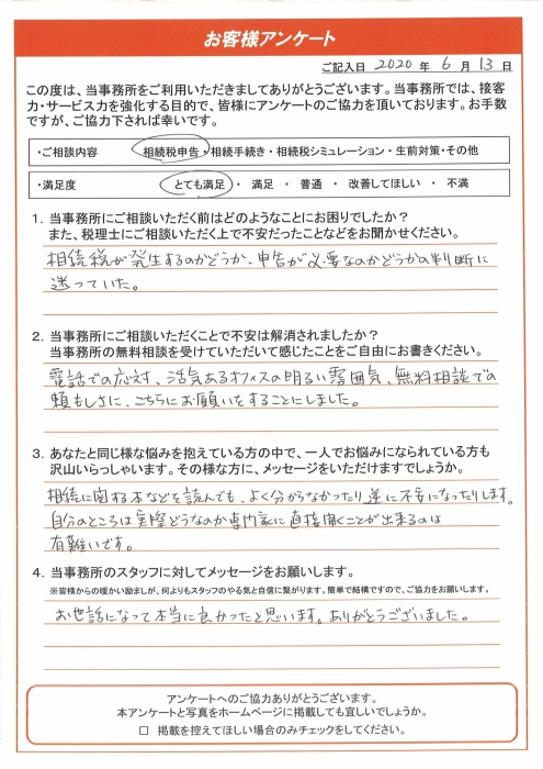 相続税が発生するのかどうか、申告が必要なのかどうかの判断に迷っていた。