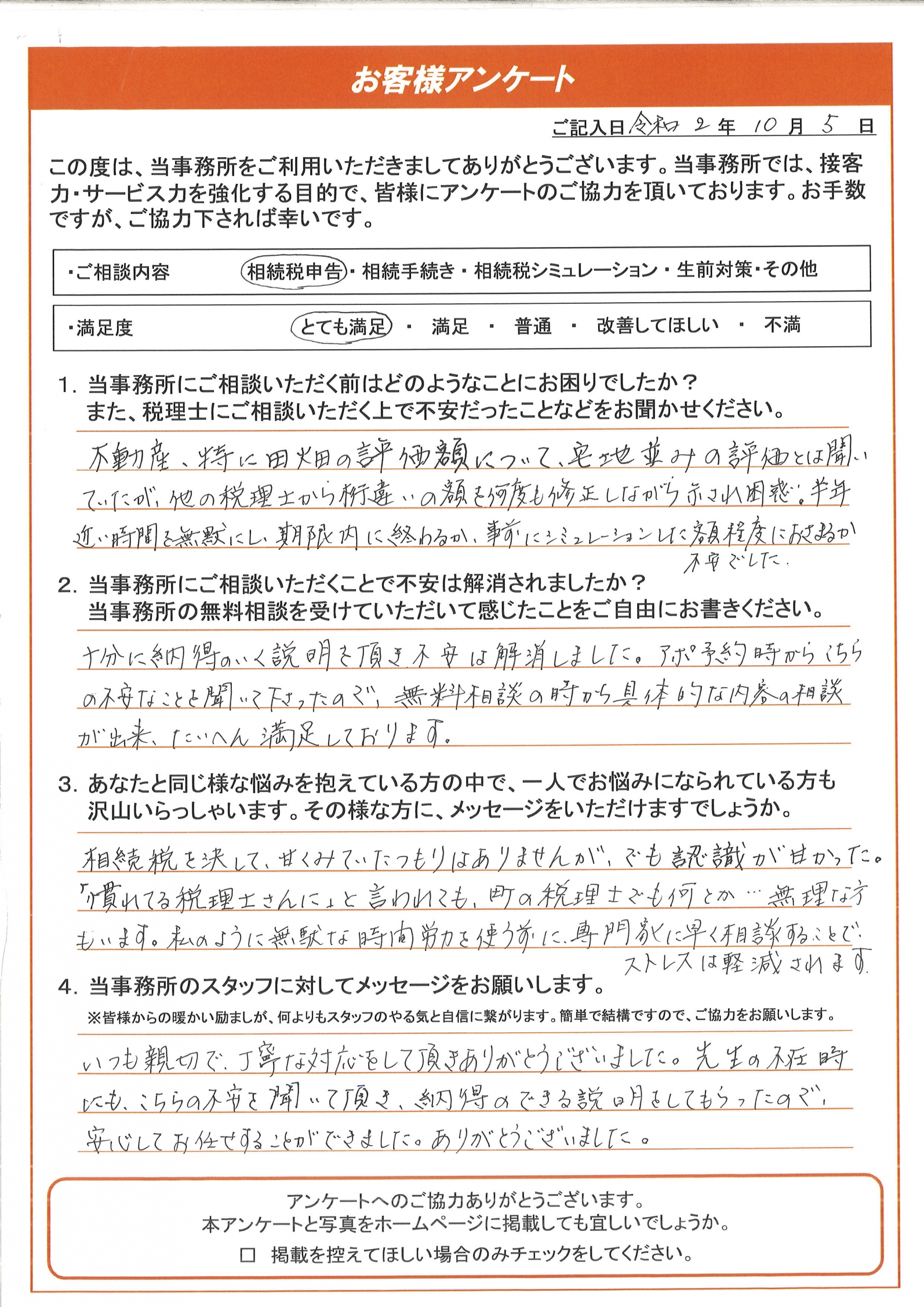 不動産、特に田畑の評価額について、宅地並みの評価とは聞いていたが、他の税理士から桁違いの額を